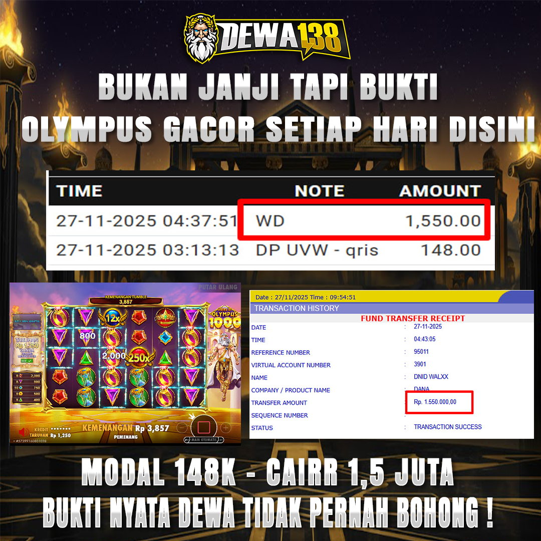 Gabung bersama DEWA138 dan Dapatkan kesempatan jackpot sensasional dalam 15 menit separate bukti banner ini bukan sekedar janji hanya Depo 148k Withdraw 1,5+ juta hari ini.